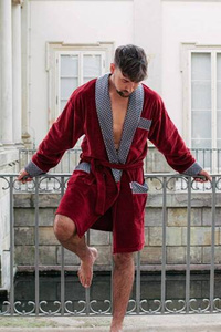 803 / 819 Twin Forex Frottee-Morgenmantel für Herren - grau mit lila Karos (grau kariert)