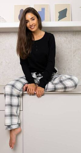 Izera Damen Schlafanzug langarm, lange Hose Italian Fashion - rot/print