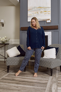 Abisynia Damen Schlafanzug langarm, lange Hose Italian Fashion - print/schwarz
