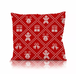 Holly Jolly Faro dekorativer Weihnachtskissenbezug – Mikrofaser, rot mit weihnachtlichem Pullovermuster