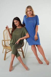 Natura Pyjamas Damen kurzarm, 3/4 Hose Italienische Mode - khaki