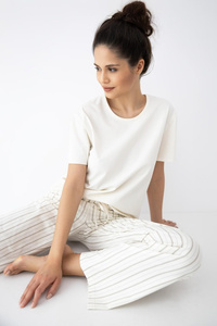 Damenpyjama Adria Taro – Baumwoll-Pyjama mit Spitzen-Tasche, 7/8 Hose, kurze Ärmel