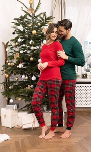 Tess Damen Schlafanzug langarm und lange Hose Italian Fashion - rot/print