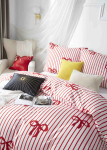 Xmass Bow Weihnachts-Mikrosatin-Bettwäsche, weiße, rote Schleifen I25 aus Nadel und Faden – weich, glatt und langlebig