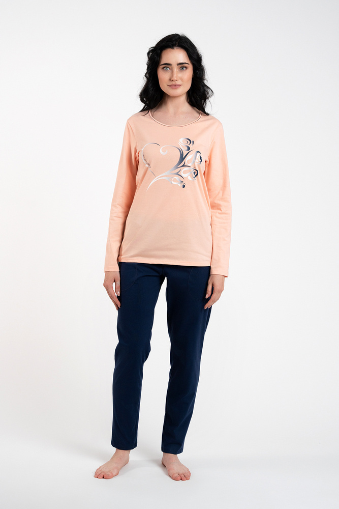 Arietta Damen Schlafanzug und Hose mit langen Ärmeln Italian Fashion - lachs