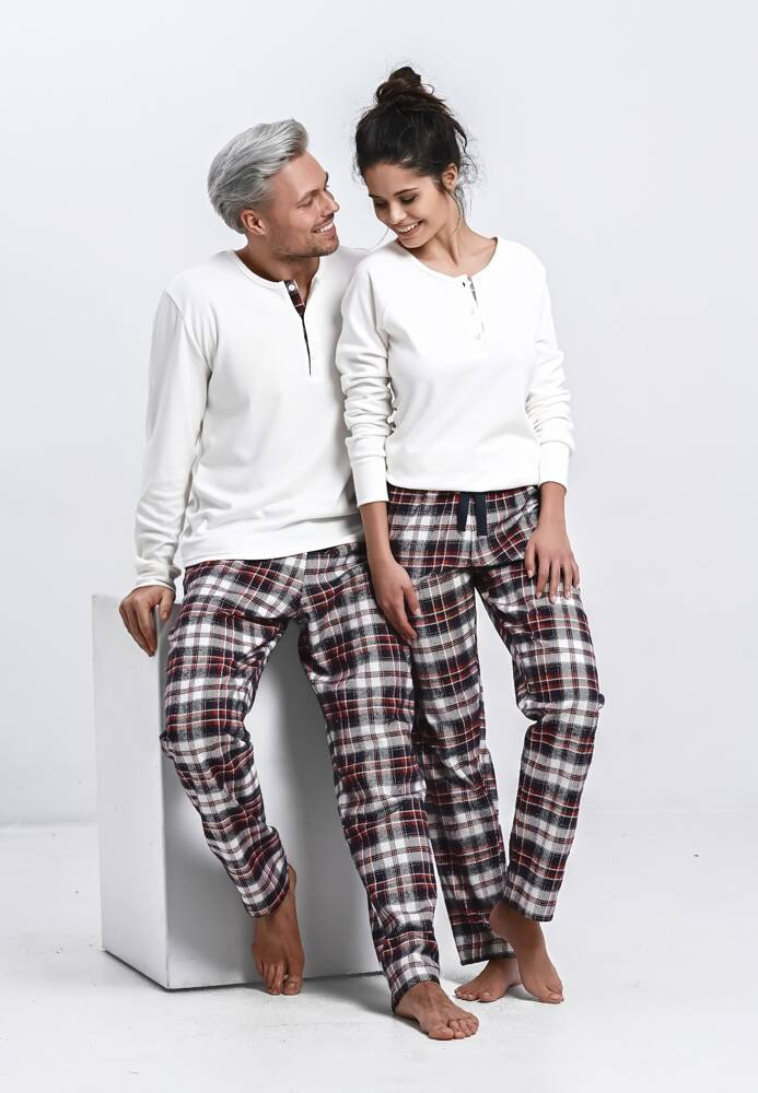 Damenpyjama aus hochwertiger Baumwolle. Langärmeliges T-Shirt, v-Ausschnitt mit Knopfverschluss