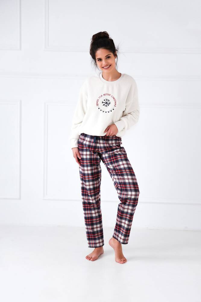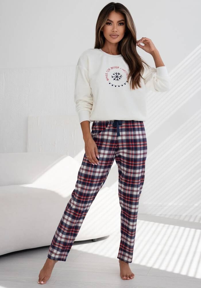 Damenpyjama aus hochwertiger Baumwolle. Langärmeliges T-Shirt, rundhalsausschnitt.