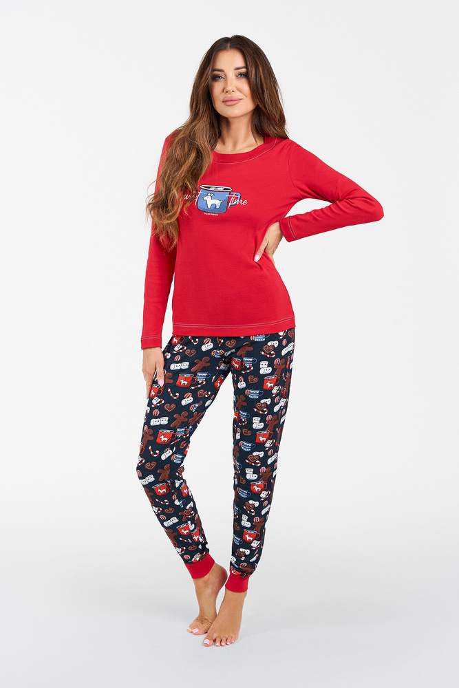 Makala Damen Schlafanzug mit langen Ärmeln und langer Hose Italian Fashion - rot/print
