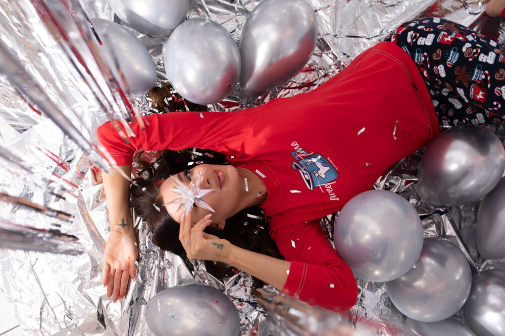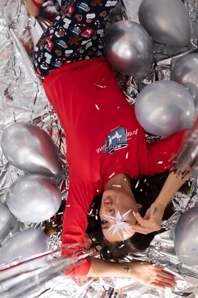 Diese coolen, modischen Damenpyjamas sind perfekt für einen Abend mit Freundinnen oder einfach nur, um sich selbst eine angenehme Nacht zu garantieren. Der Schlafanzug für Frauen mit langen Hosen und langen Ärmeln ist mit einem niedlichen Keksmuster verziert und lädt zum Träumen ein. Sie ist einfach geschnitten, um Komfort und Bewegungsfreiheit zu gewährleisten, und besteht aus einem natürlichen Material, das die bestmöglichen Bedingungen für die Haut bietet. Das Sweatshirt des Damenpyjamas ist mit einem Rundhalsausschnitt und einem Print auf der Vorderseite versehen, während die Hose - ganz im Muster - bequeme Rippbündchen an den Beinen hat. Die Baumwollpyjamas für Damen sind in den Größen S bis XL in den Hauptfarben Marineblau und Rot erhältlich.