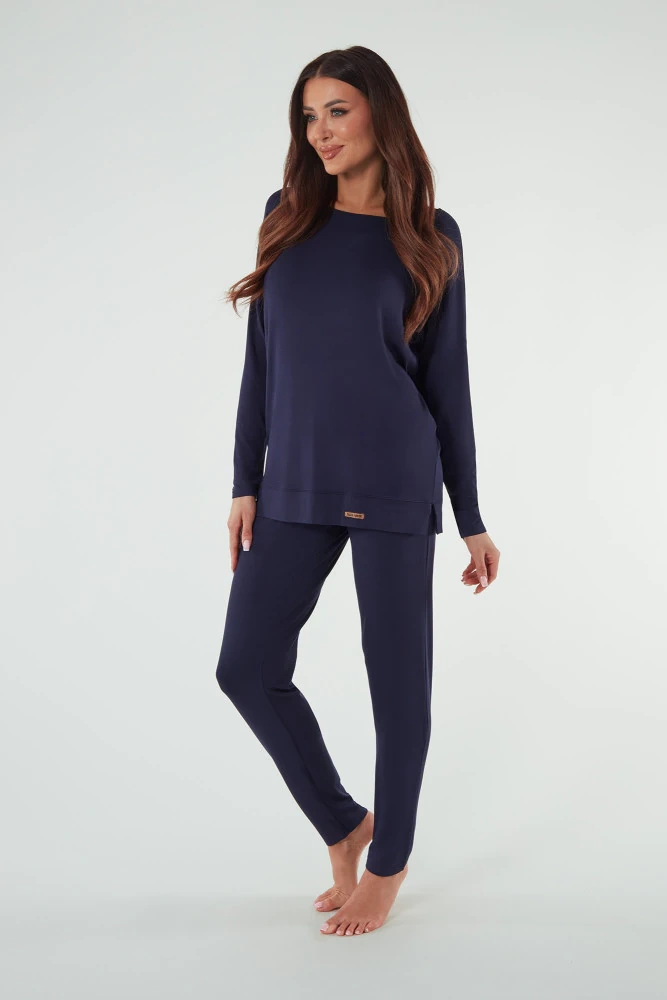 Akord Damen Langarmset, lange Hose Italienische Mode - navy blau