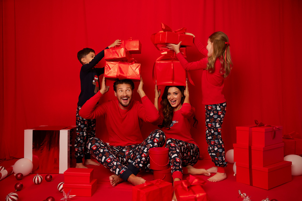 Nicht nur für kleine Schleckermäuler - Kinderschlafanzüge in niedlichen Keksen! Es wird zweifellos alle Träume süß machen! Der Kinderschlafanzug aus Baumwolle hält die Haut schön atmungsaktiv, und der gerade Schnitt sorgt dafür, dass sich auch die größten Zappelphilippe wohlfühlen. Der Kinderpyjama mit langen Ärmeln und langer Hose hat ein Sweatshirt mit Rundhalsausschnitt, während die Hose einen bequemen Rippbeinsaum hat. Der süße Druck bedeckt die gesamte Hose, während das Sweatshirt nur in der Mitte der Hose verziert ist. Die Kinderpyjamas sind in Größen für Kinder von 2 bis 14 Jahren erhältlich, in den Farben marineblau und rot.