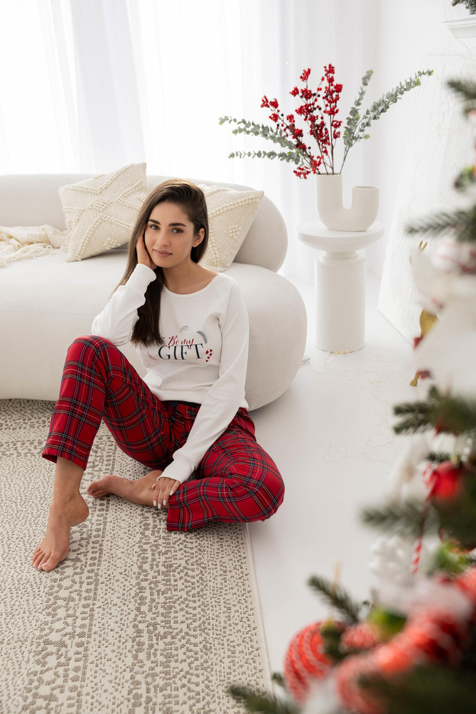 Damenpyjama aus hochwertiger Baumwolle. Langärmeliges T-Shirt mit Rundhalsausschnitt.