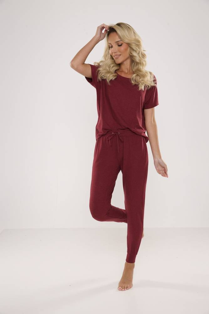 Damenpyjama aus hochwertiger Viskose mit Elastan. Locker sitzendes T-Shirt mit kurzen Reglanärmeln. Lange Hose mit Taschen, Beinabschluss mit Keder.