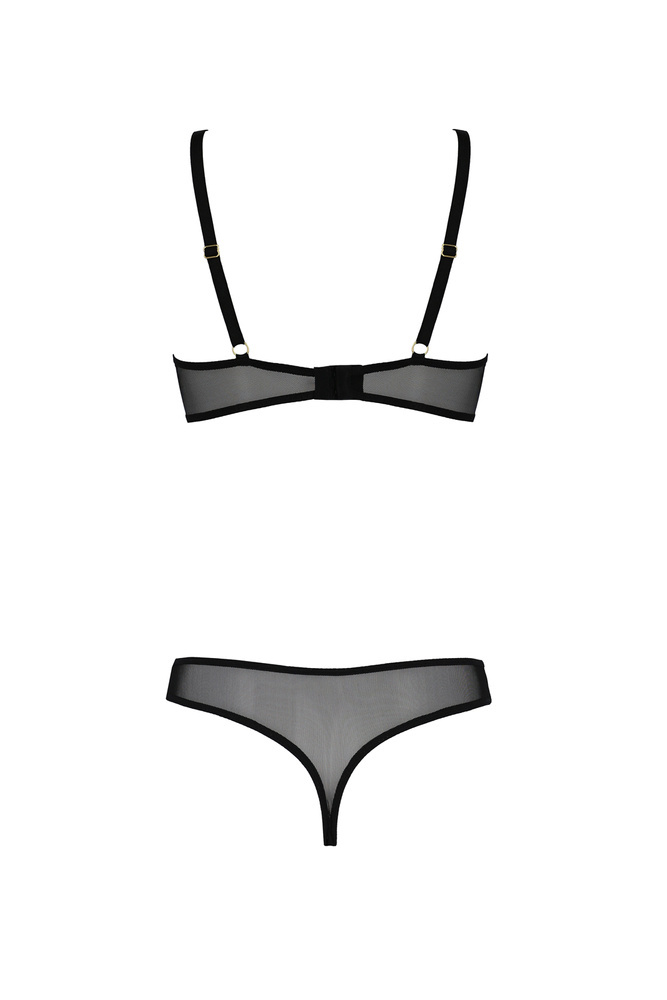 Otwarte usztywnione z fiszbiną miseczki w połączeniu z okalającymi piersi paseczkami. Wycięcia które wysmuklają sylwetkę i te urocze kropeczki… cudowne połączenie wysokiej jakości materiałów sprawiło że body prezentuje się oszałamiająco. Model dostępny w dwóch wersjach kolorystycznych - czerni i beżu.