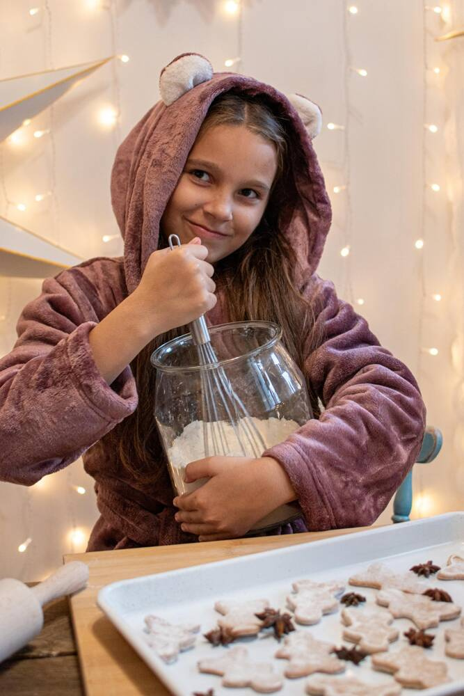 FOREX Kinderbademantel in geradem Schnitt mit Kapuze. Knielang, Seitentaschen, Bund mit Gürtel zum Binden. Alle Uniformen. Entzückende Ohren auf der Kapuze. Der Bademantel passt sich perfekt der Körperform an, ist extrem weich und leicht, aus weichem Strickstoff. Es ist ein Vergnügen, sich nach dem Baden darin einzuhüllen!
