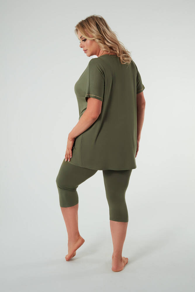 Natura Pyjamas Damen kurzarm, 3/4 Hose Italienische Mode - khaki