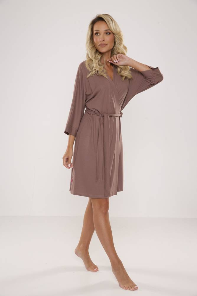 Weicher und angenehm zu tragender Damenbademantel mit praktischer Bindung. Sehr funktionelles Modell, aus weicher Viskose. Sich modisch und stilvoll fühlen wollen? Das ist der Morgenmantel für Sie. Bequemlichkeit und Weichheit lassen Ihren Morgenkaffee köstlich schmecken.
