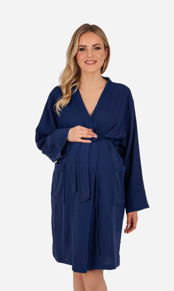 Mommy Szlafrok ciążowy muślinowy ByShelly - granatowy
