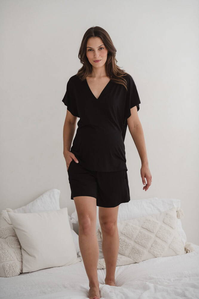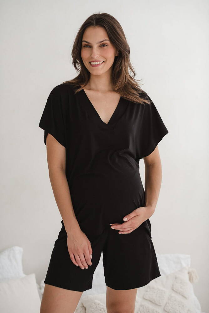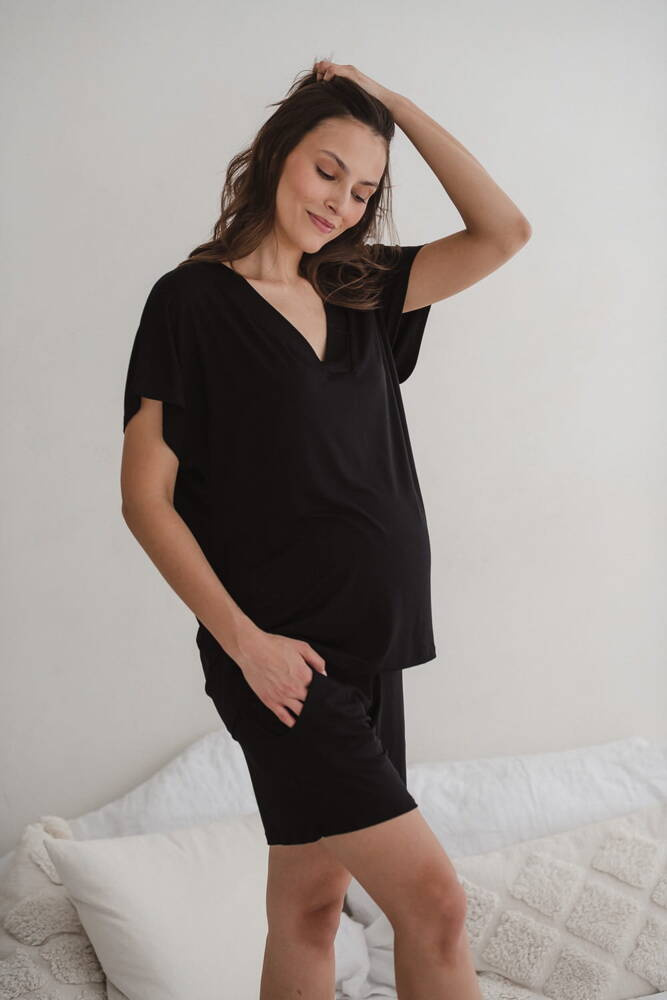 Moon bambusowa bluzka od piżamy ciążowej do karmienia krótki rękaw Milk&Love czarny