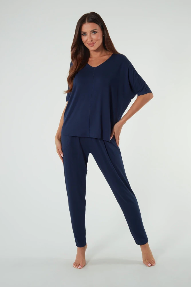 Das Viskose-Set ist für alle Jahreszeiten geeignet. Viskose schützt die Haut vor Kälte, aber die Struktur dieses Gewebes ist atmungsaktiv, so dass es die Körpertemperatur effektiv reguliert. Die weiche und sehr angenehm zu berührende Viskose sorgt zudem für einen außergewöhnlichen Schlafkomfort, der durch den druckfreien Gummizug in der Hose und den lockeren Schnitt noch verstärkt wird. Der Charme des Sets wird durch den originellen und leicht pingeligen Schnitt ergänzt. Er ist die ideale Wahl für alle, die Komfort mit Klasse verbinden wollen.