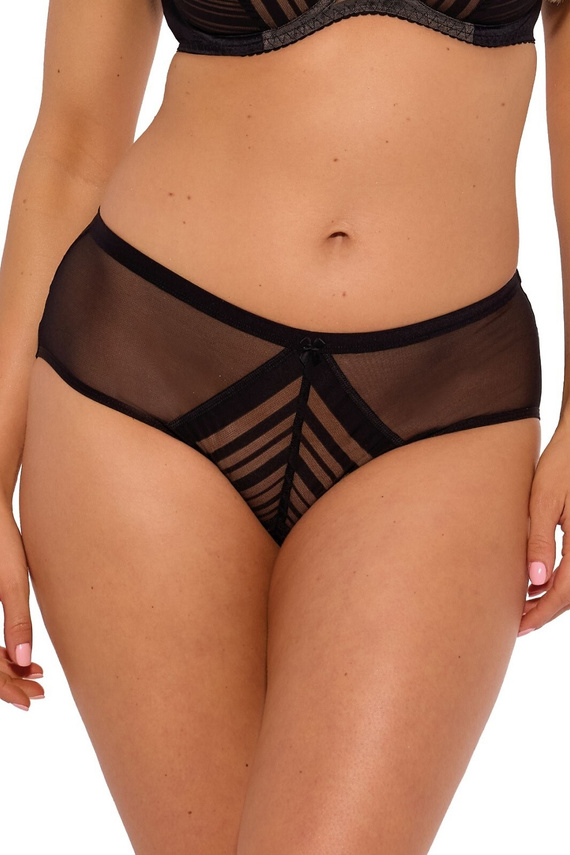 Beeindruckendes Damenhöschen im vollen klassischen Schnitt. Aus transparentem gestreiftem Netz und glatter Mikrofaser