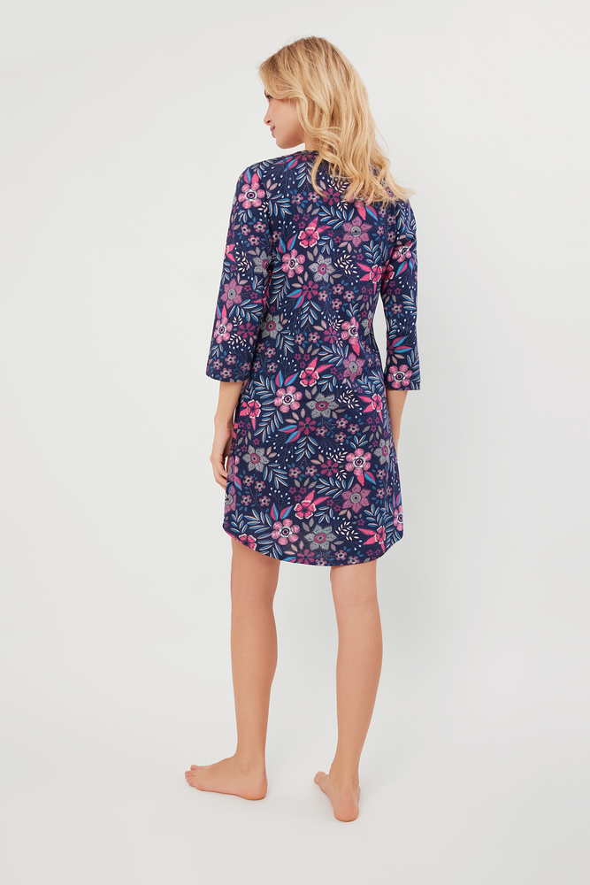 Dieses Baumwollnachthemd ist für Frauen, die ihre Nachtgarderobe aufpeppen wollen. Der bequeme, leicht ausgestellte Schnitt sorgt dafür, dass Sie bequem schlafen können. Es zeichnet sich durch einen modischen Aufdruck von bunten Blumen und Blättern aus, der das Ganze sehr originell aussehen lässt. Das ungeknöpfte Nachthemd hat außerdem einen praktischen Knopfverschluss und ¾ lange Ärmel.