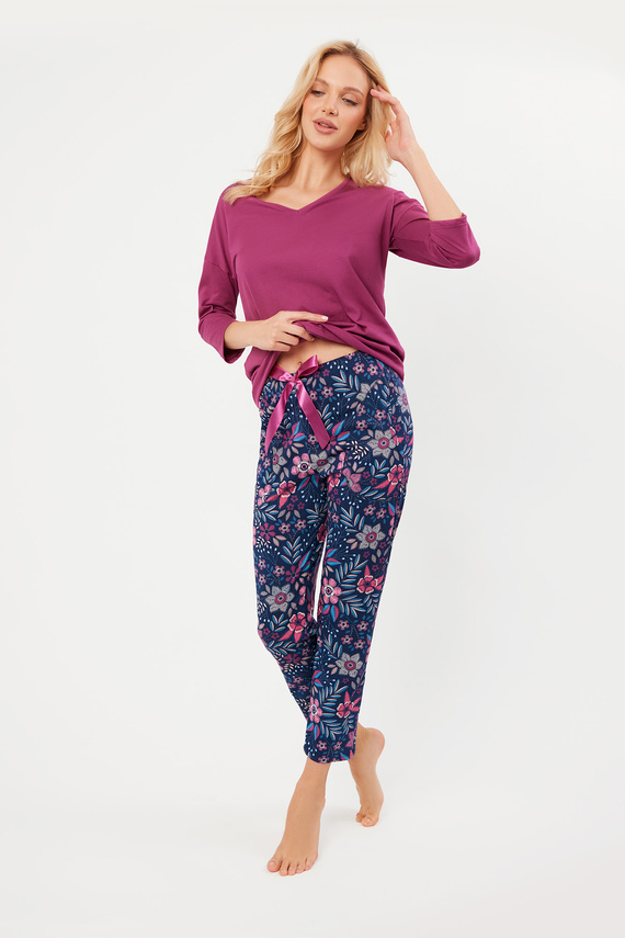 Folk Damen Schlafanzug 3/4 Ärmel, 7/8 Hose Italian Fashion - brombeer/print
