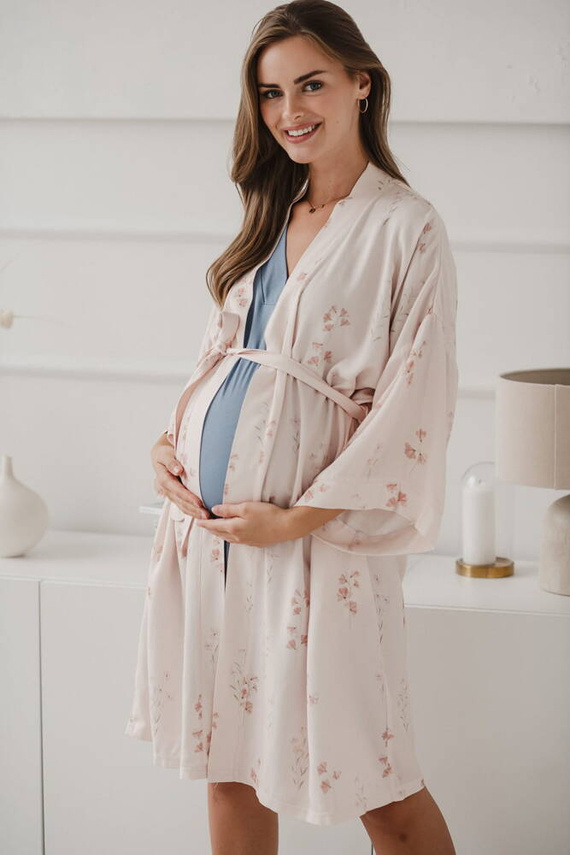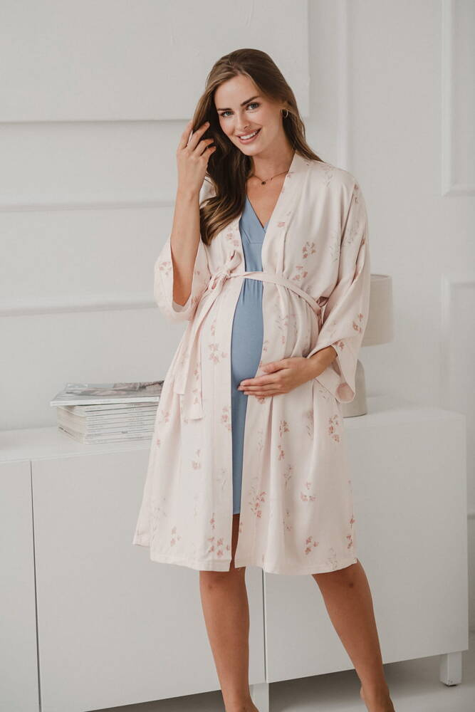 Flowers on pink szlafrok bambusowy ciążowy Milk&Love różowy