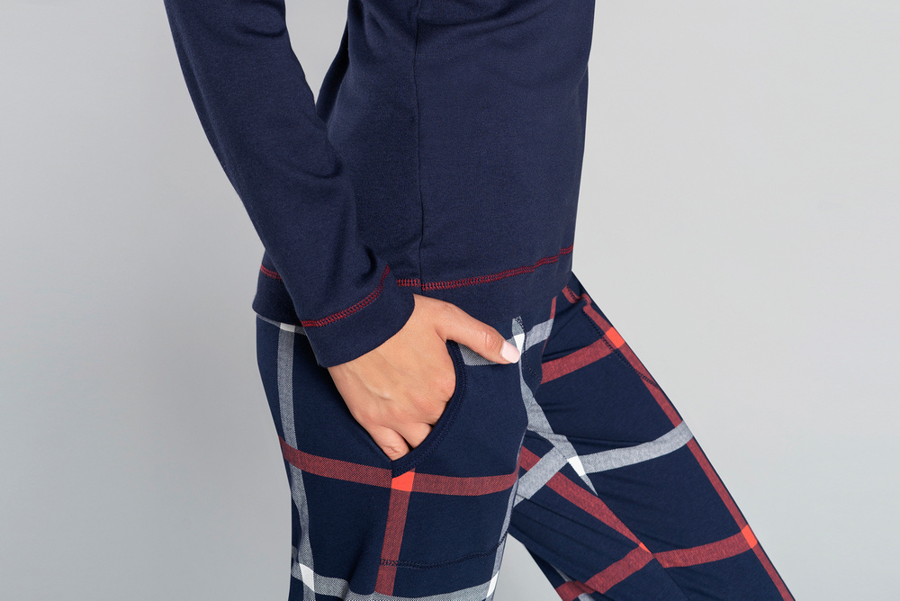 Das Karomuster gehört zu den zeitlosen Mustern, die in den kommenden Saisons immer wieder in verschiedenen Formen auftauchen werden. Der Damenpyjama Izera ist unser neuester Vorschlag in der Herbst-Winter-Kollektion. Klassisches Marineblau kombiniert mit zarten roten und weißen Karos. Der bequeme, leicht taillierte Schnitt und die 100%ige Baumwollqualität wickeln Sie an kühlen Abenden und Nächten angenehm ein und sorgen für außergewöhnlichen Liegekomfort.