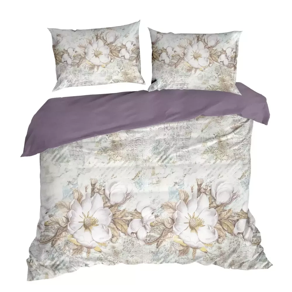 Frühling 26 Blumen Satinbettwäsche Eurovorhänge creme/lila
