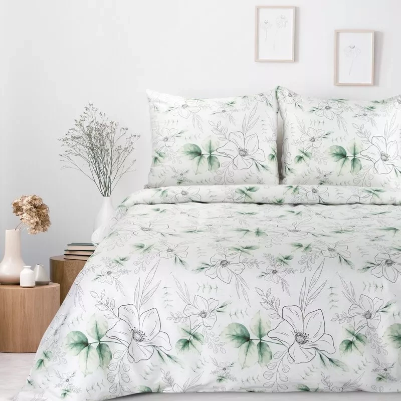 Frühling 28 Blumen Satinbettwäsche Eurovorhänge weiß/grün