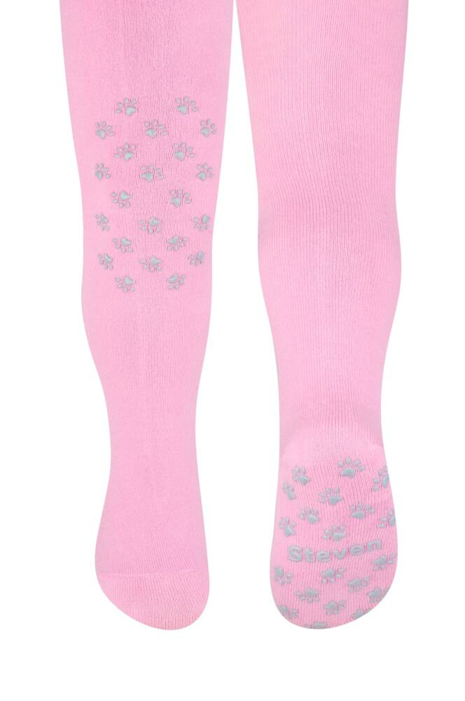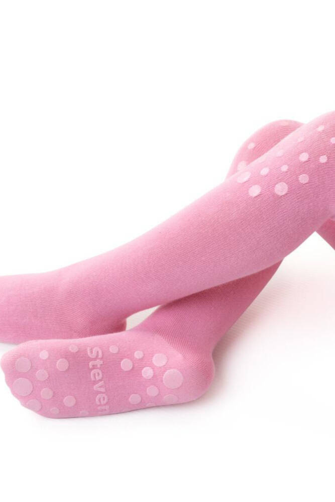 Baumwollstrumpfhosen mit rutschfesten Gummibändern unter dem Fuß und an den Knien ermöglichen sicheres Laufenlernen. Glatte Struktur der Strumpfhose, das Gummiband drückt die Taille nicht ein. Sie pillen nicht und schränken die Bewegungen des Kindes nicht ein.