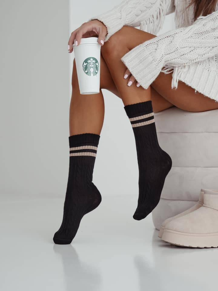 Damensocken aus hochwertiger Baumwolle. Sie haben ein Zopfmuster und zwei Zierstreifen.