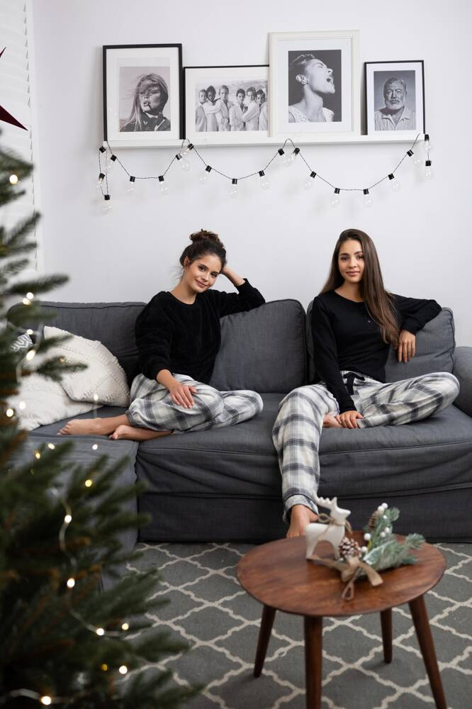 Im Set enthalten sind lange, karierte Flanellhosen