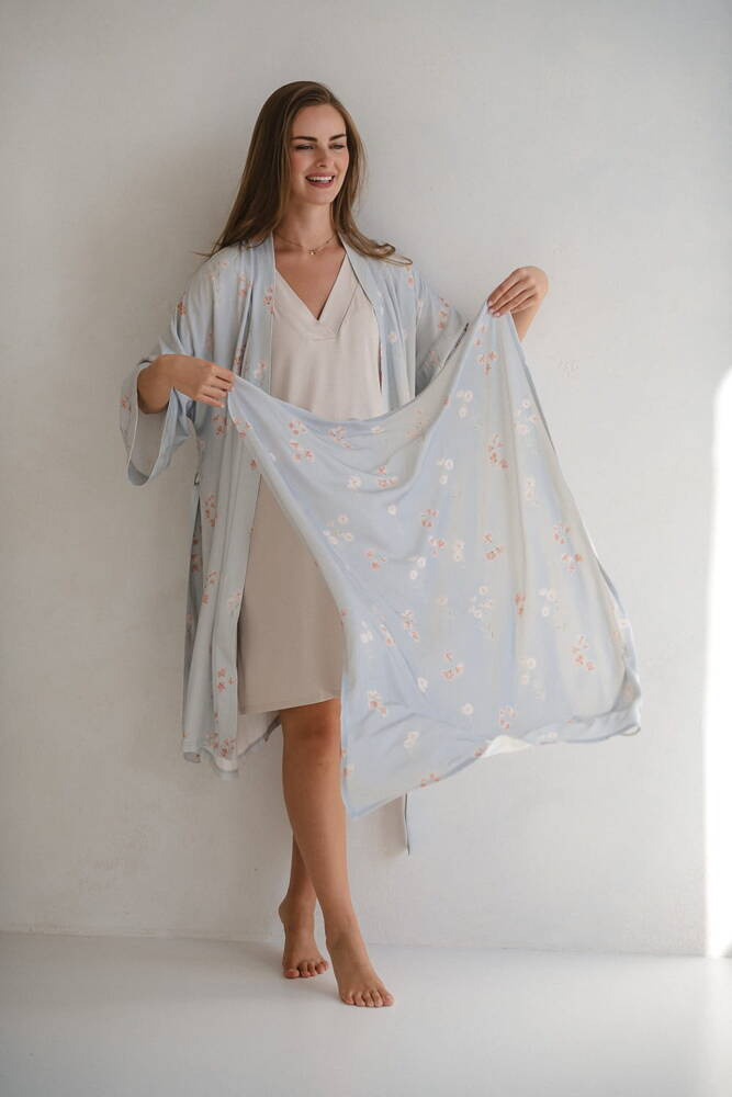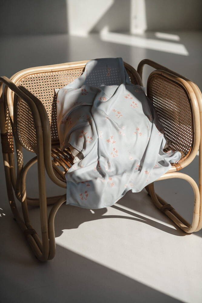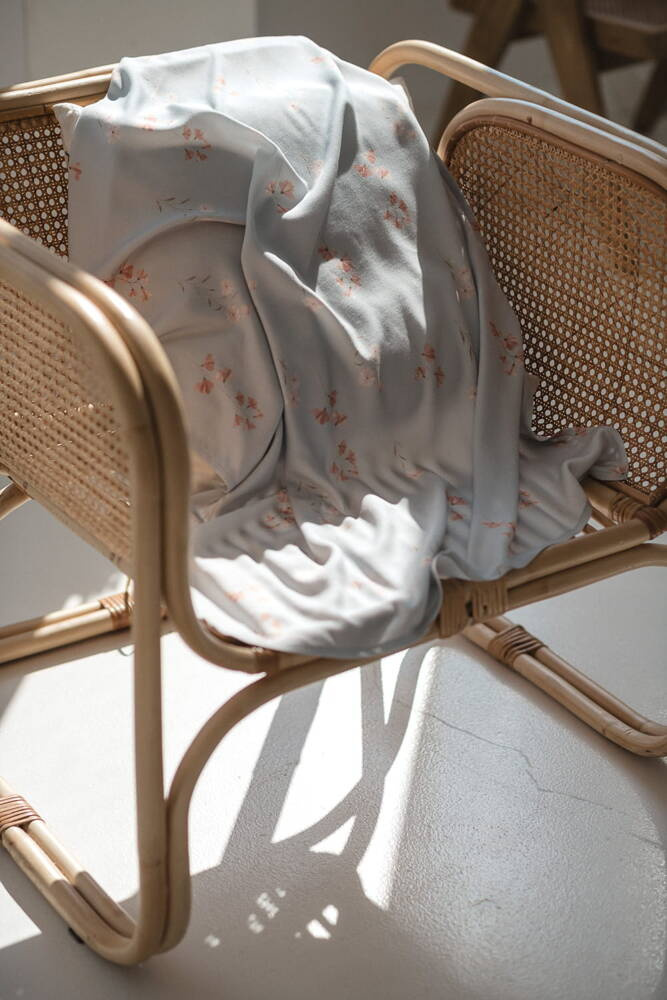 Blumen auf blauem Milk&Love-Bambuswickeltuch