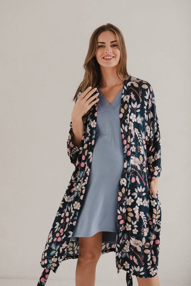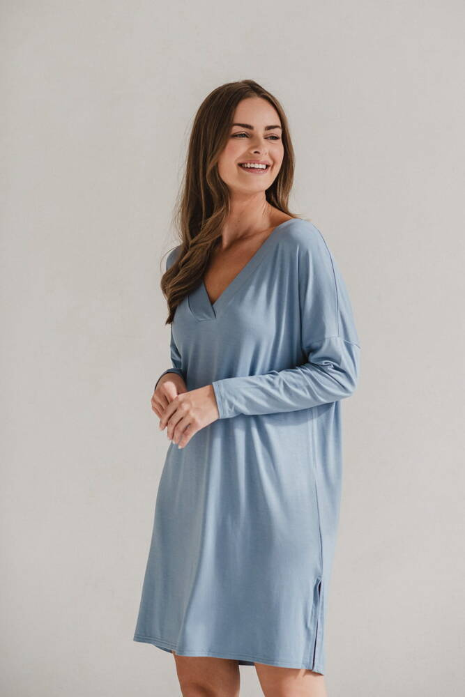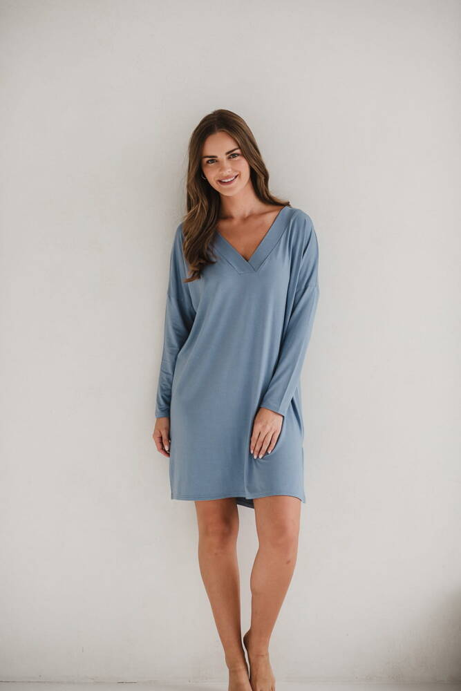 Moon Umstands- und Stillnachthemd aus Bambus, langärmlig, Milk&Love, blau