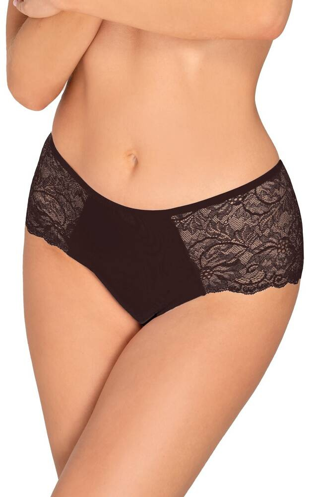 Damenhöschen aus zarter Mikrofaser. Die Seiten und die Rückseite sind mit durchbrochener Spitze versehen