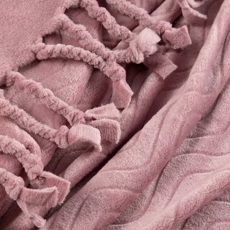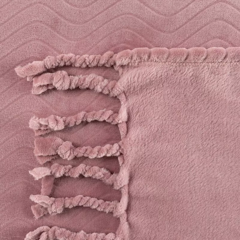 Eine elegante und angenehm anzufassende Decke, verziert mit Fransen. Das Muster mit subtilen Wellen verleiht Stil und Einzigartigkeit und macht es zu einer perfekten Ergänzung für die Inneneinrichtung. Die aus hochwertigem Polyester gefertigte Decke sorgt für Weichheit und Tragekomfort.
