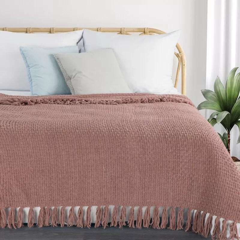 Suzi-Decke, gewebte Tagesdecke mit Fransen, Euro-Vorhänge, Puder