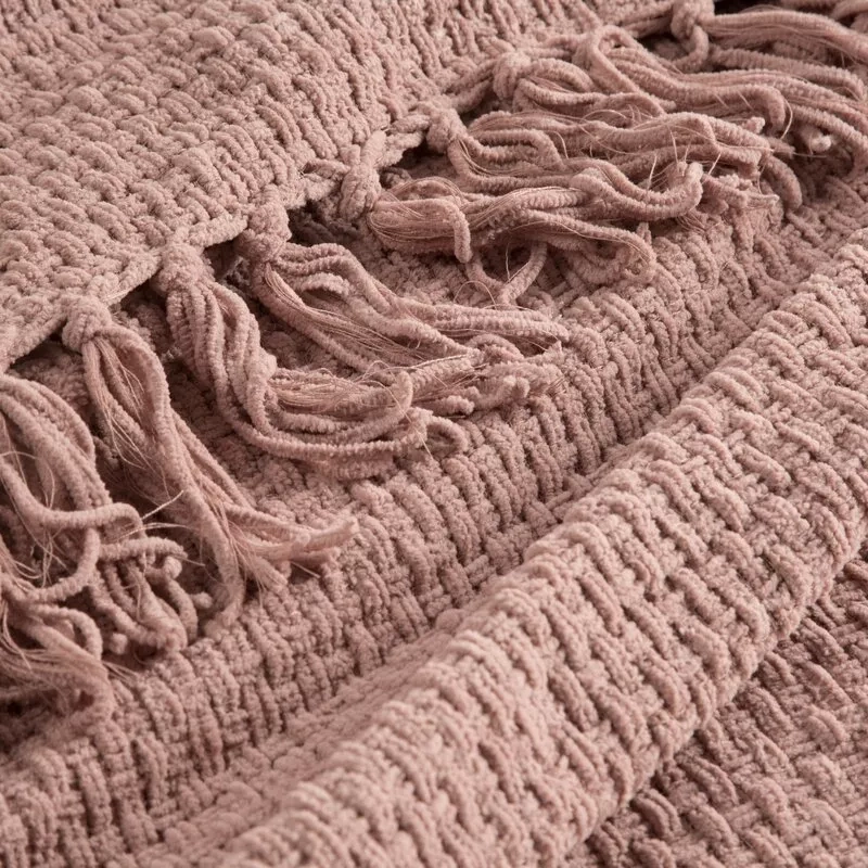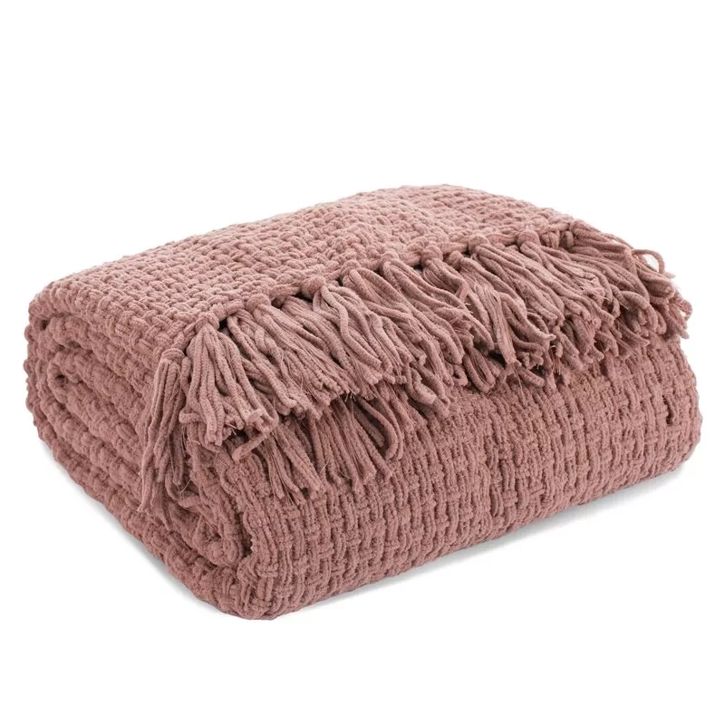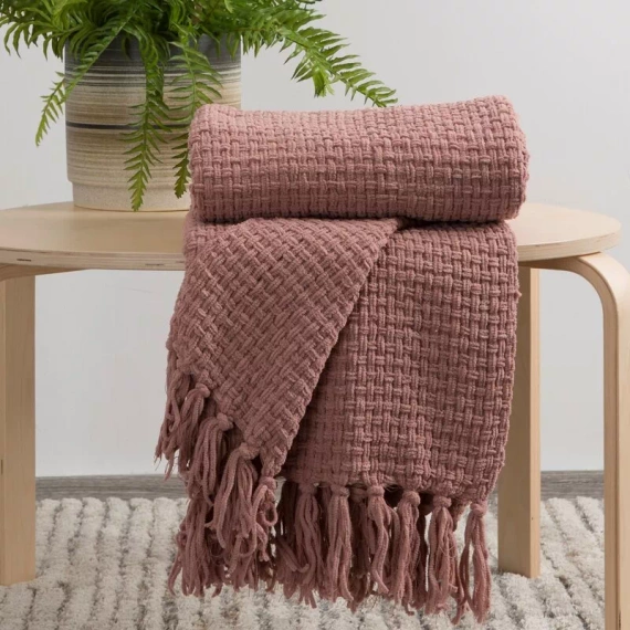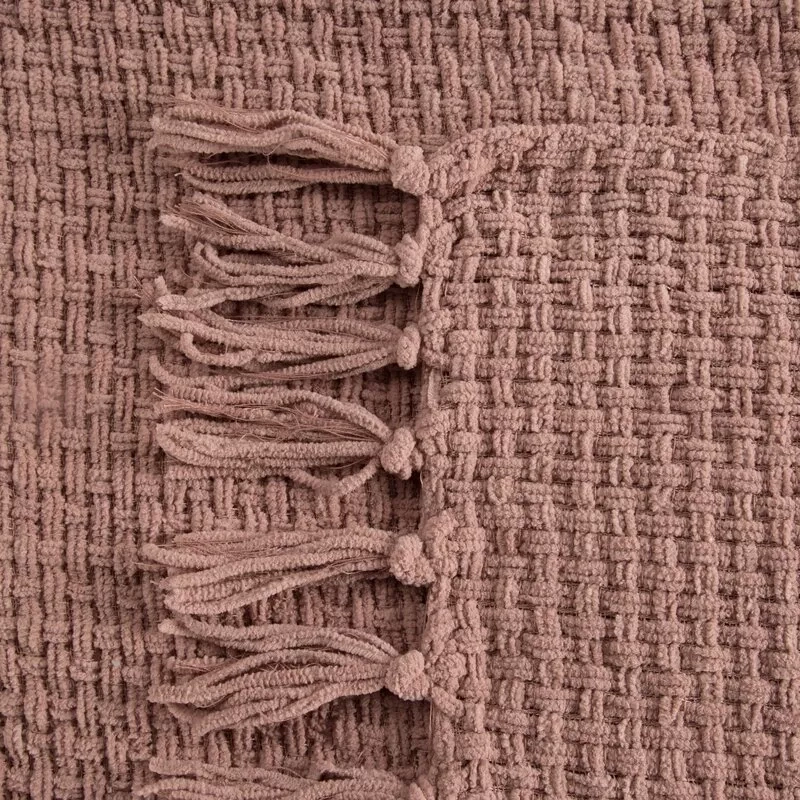 Eine stilvolle und elegante Decke mit gewebter Struktur und dekorativen Fransen. Die solide Konstruktion aus hochwertigem Polyester sorgt für Weichheit, Komfort und Haltbarkeit, was es perfekt für den täglichen Gebrauch macht.