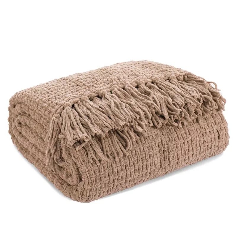 Stelle eine FrageEine stilvolle und elegante Decke mit gewebter Struktur und dekorativen Fransen. Die solide Konstruktion aus hochwertigem Polyester sorgt für Weichheit, Komfort und Haltbarkeit, was es perfekt für den täglichen Gebrauch macht.