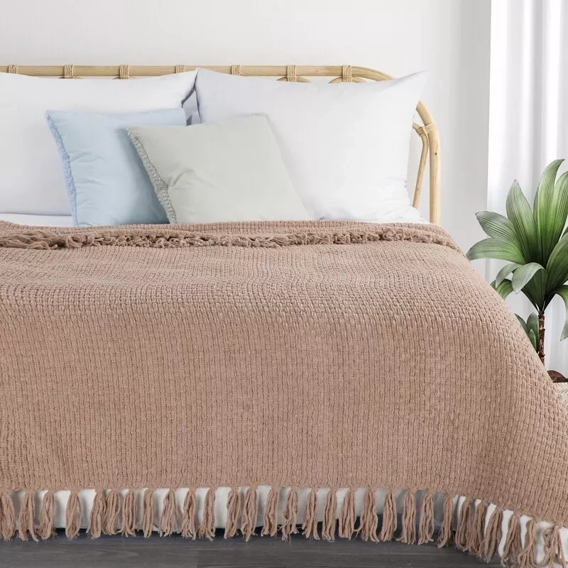 Suzi Decke, Tagesdecke, gewebt mit Fransen, Eurocurtains, beige