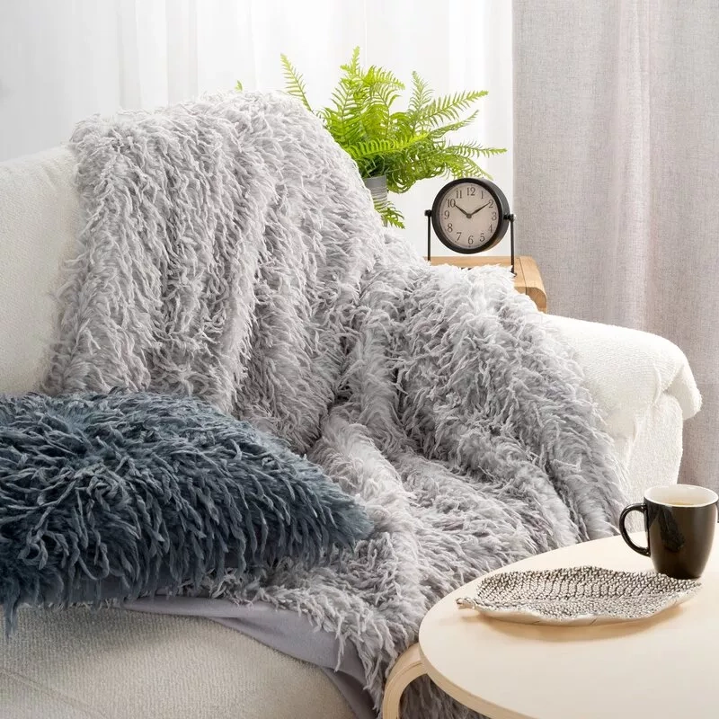 Adore Blanket, zottelige, pelzige Tagesdecke, Eurocurtains, Silber