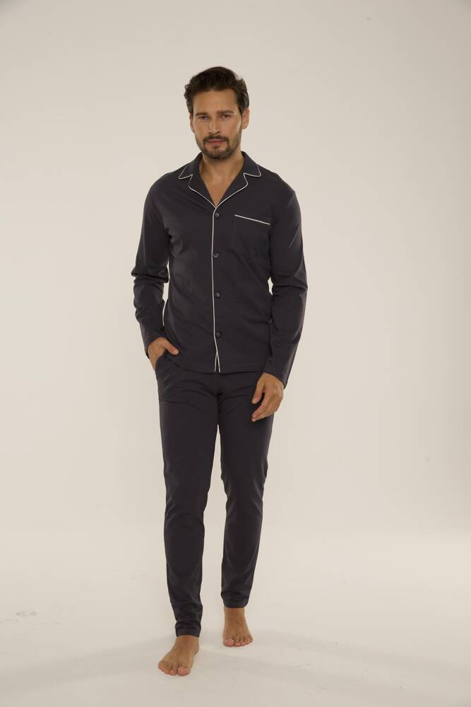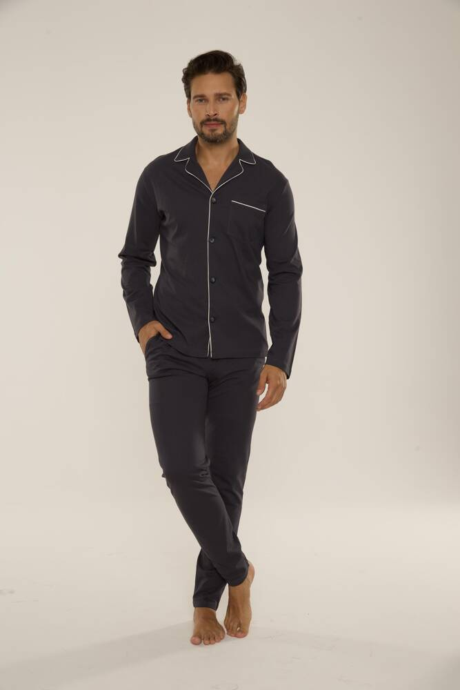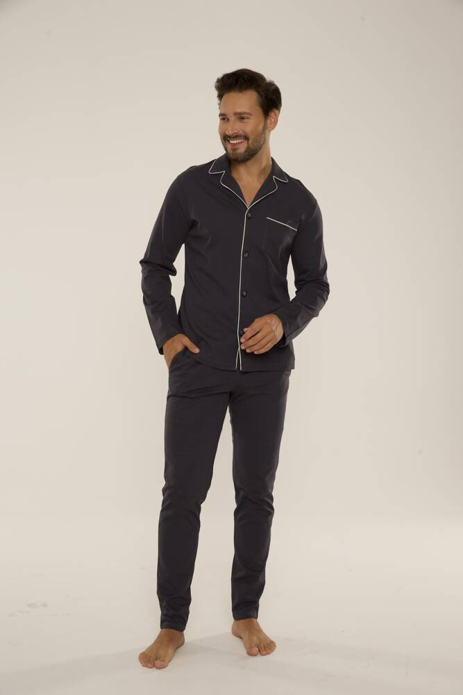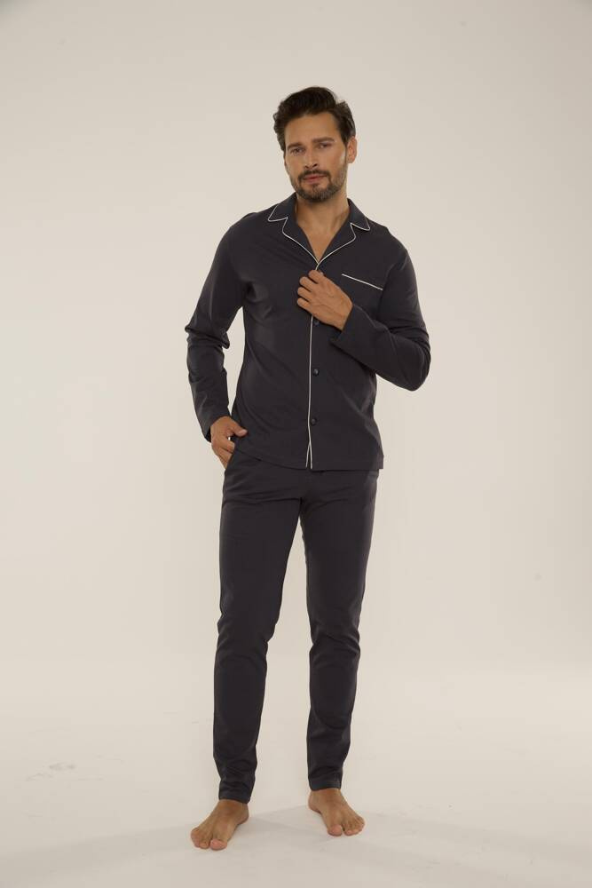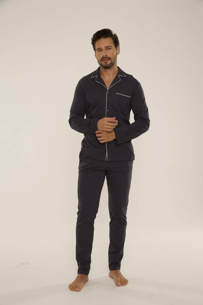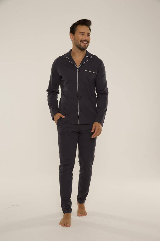 Außergewöhnlich bequemer Herrenpyjama aus hochwertiger Baumwolle.