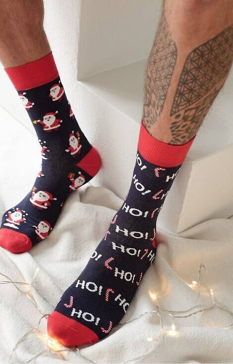 Herrensocken mit Weihnachtsmotiv aus hochwertiger Baumwolle.