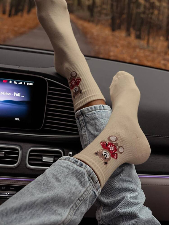 0200-132 Teddybär im Pullover Weihnachts-Milena-Damensocken - Beige
