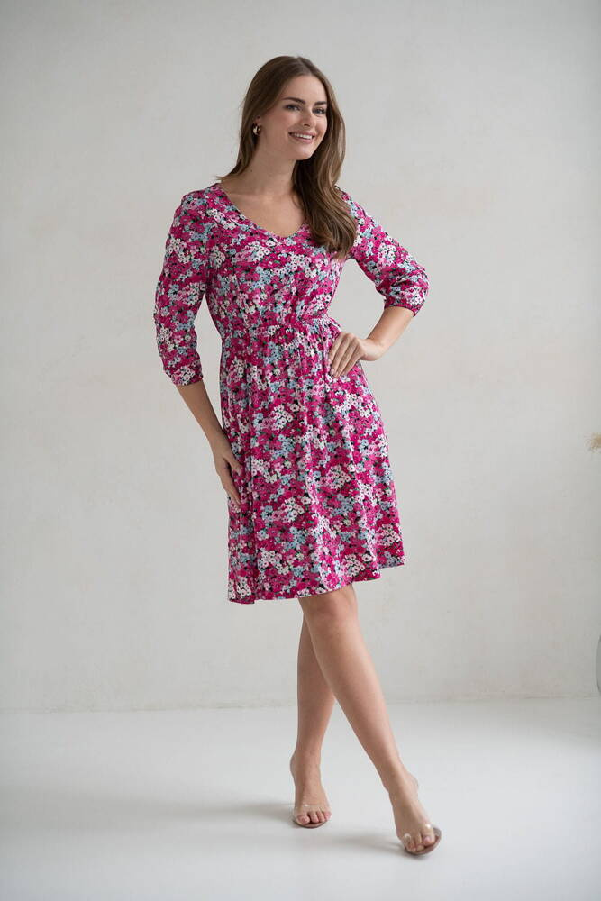 Schönes Midi-Umstands- und Stillkleid mit 3/4-Ärmeln von Milk&Love mit Blumen