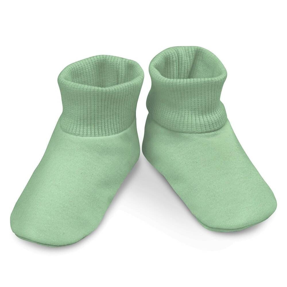 Leichte Babyschuhe mit breiter Manschette, die bei Bedarf hochgekrempelt werden kann.