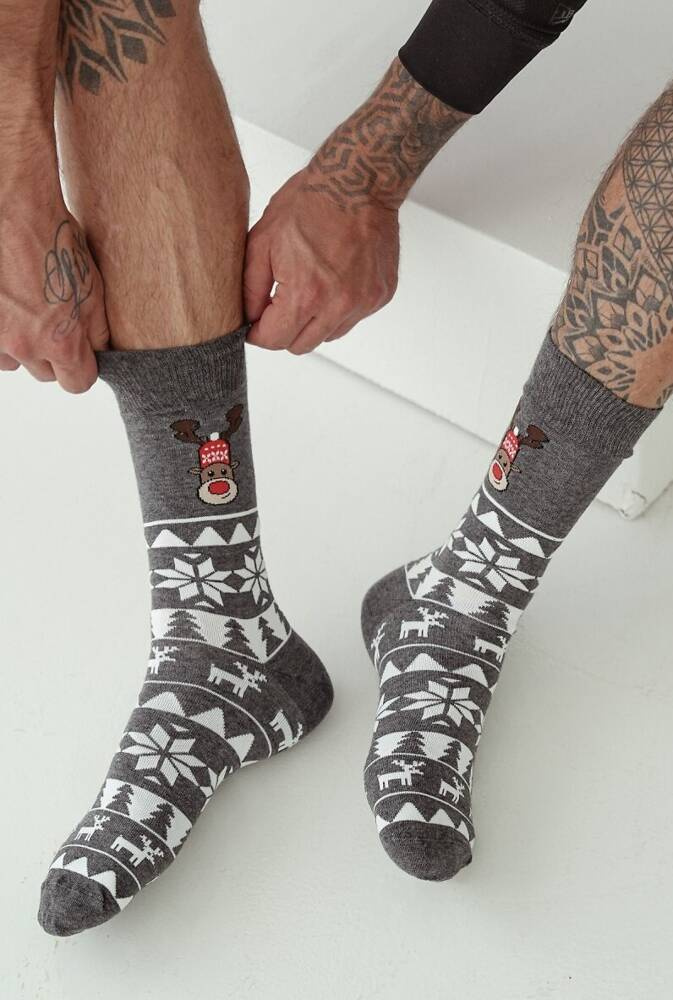 1290-022 Milena Norweger-Rentier-Weihnachtssocken für Herren – Dunkle Melange