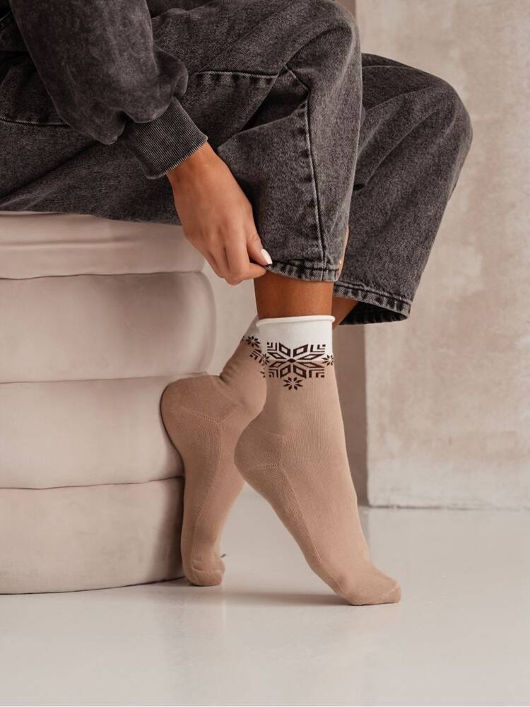 0071-007 Snowflake Unique Damen Weihnachtssocken Milena – beige